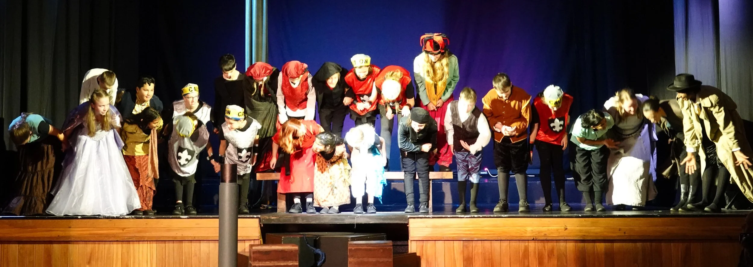 Our 2023 production was The Wreck Of The Shakespeare, written and directed by Douglas Roberts. It was Shoestring’s ninth theatre production. It starred twenty-six children and young people, aged from 7-17. It was performed in Waiuku War Memorial Hall on Friday March 31st and April 1st 2023.